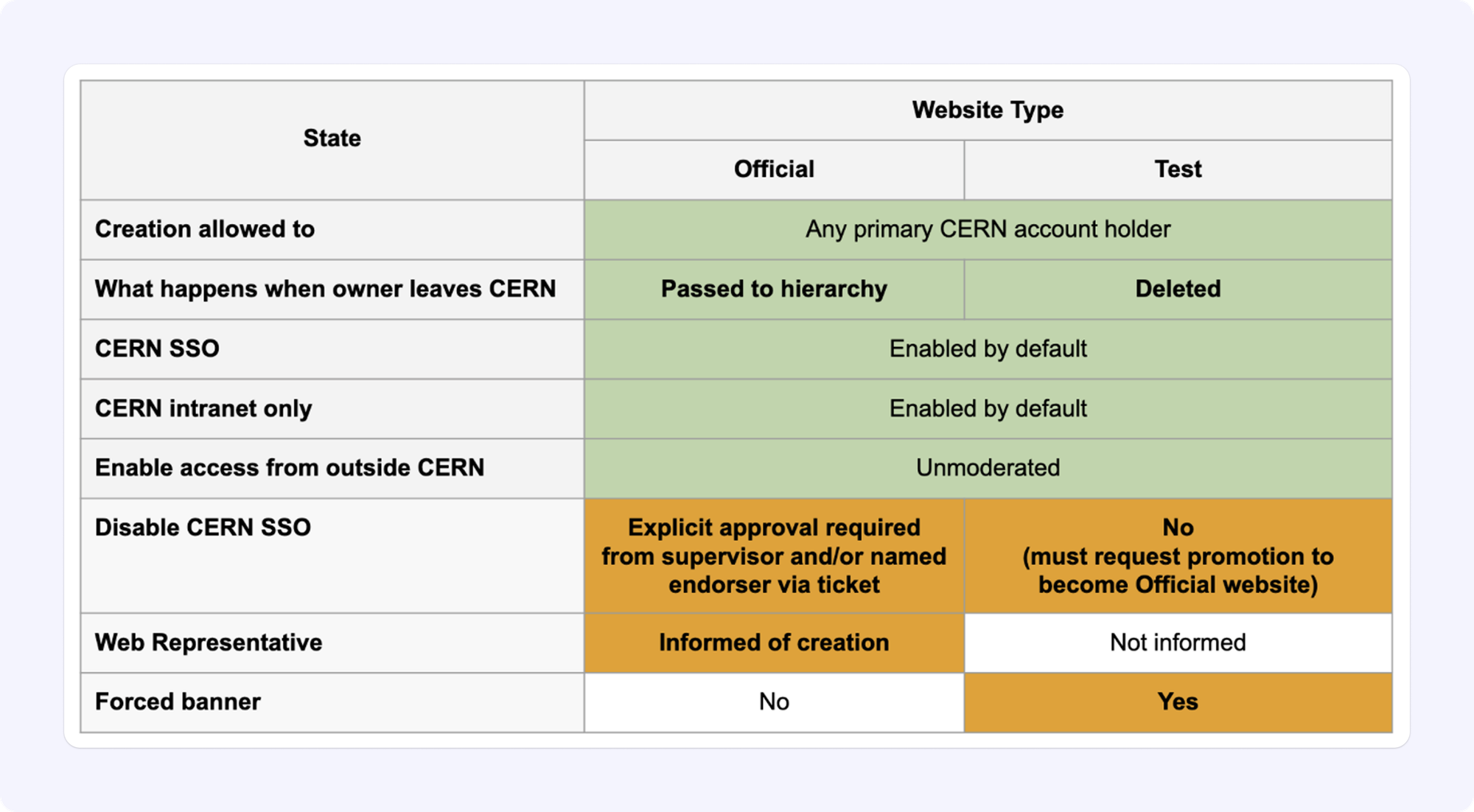 Test Websites (development/staging sites like my-feature.web.cern.ch):